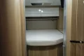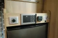 Dispone de cama en isla elevable, y cama de matrimonio suspendida sobre el salón. Nevera trivalente de 150 litros. Microondas en el garaje. Calefacción Truma. Toldo. Placa solar. 2 baterías de agm en la vivienda. 2 tv, en el salón y en la habitación.